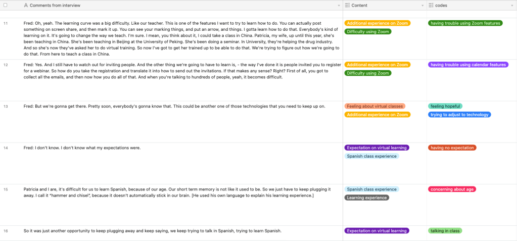 I transcribed and used Airtable to analyze interview data.